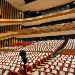 イチョウ並木の道を辿り、会場に到着 今日は1500名の皆様が集う式典の司会をさせていただきました。 ...